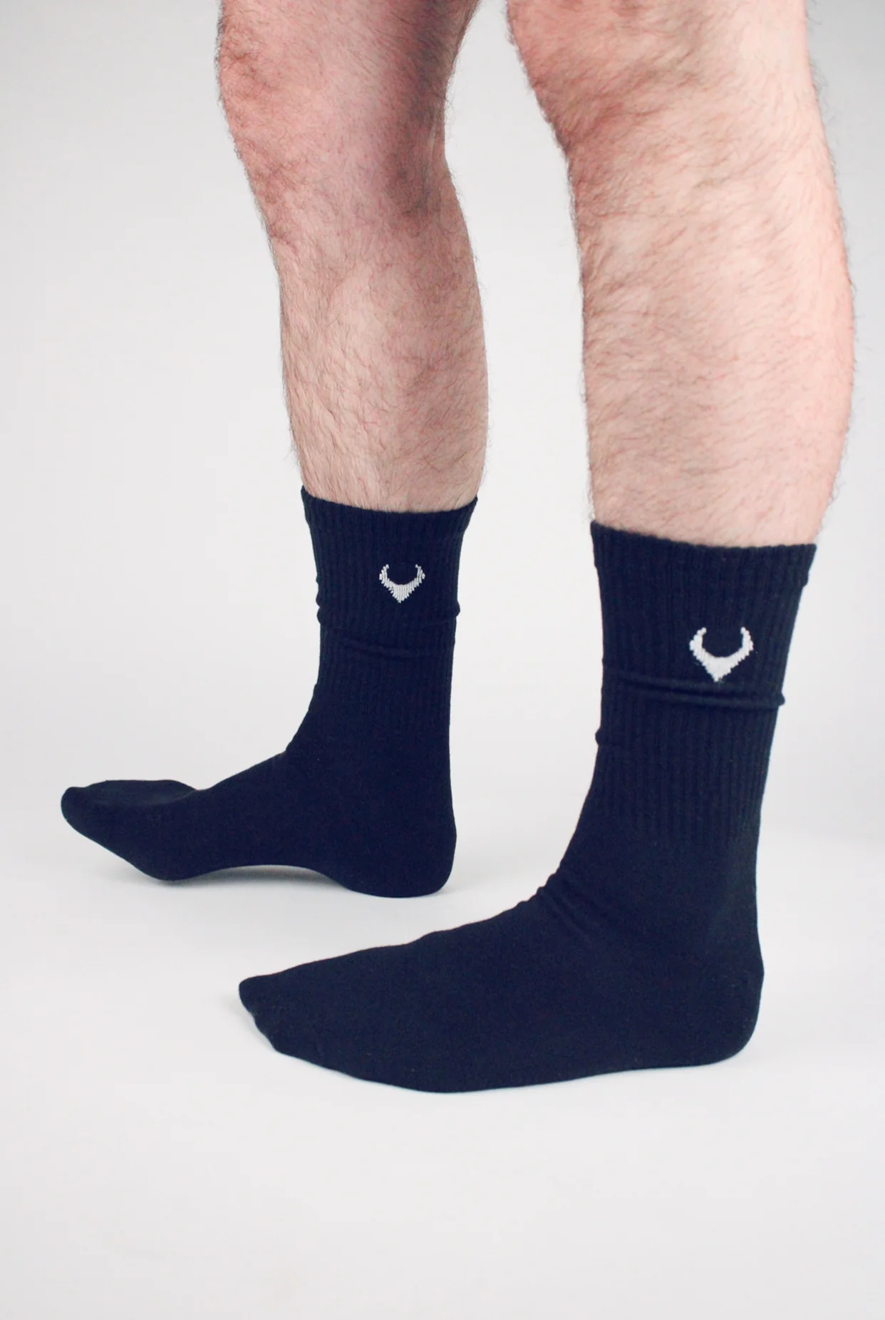 Your new every-day crew sock is here! No matter if you are going to the gym, lounging around, out and about, or even at more normal functions, these high-elastic, stretch-fit socks provide the utmost comfort and support. Featuring ribbed knit cuff and toe and knitted FANG logos at inner and outer shin.