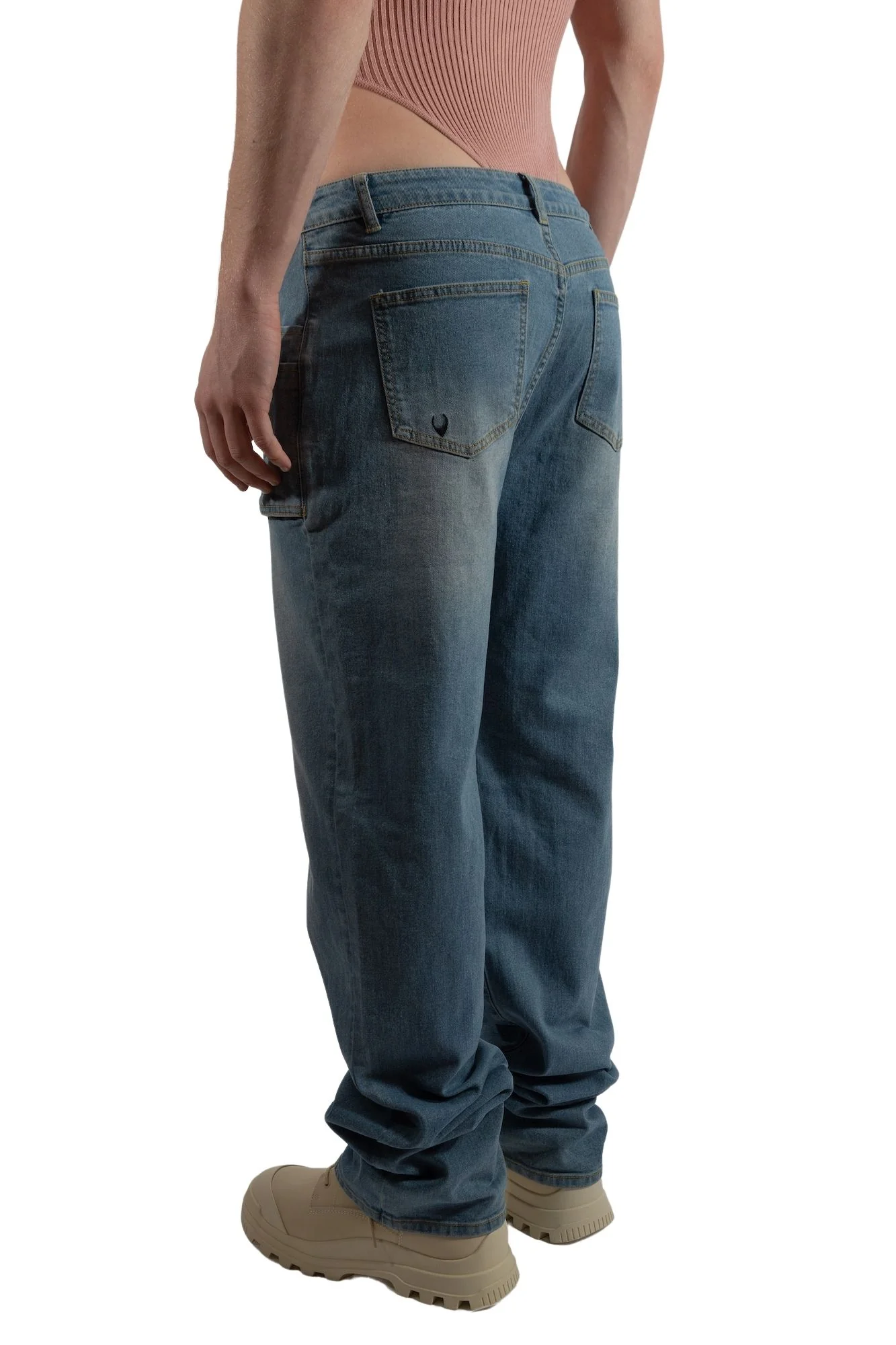 Low-rise and oversized jeans crafted with premium cotton. A relaxed fit that bunches at the bottom. Featuring six pockets: four smock-like pouches at the front and two regular pockets at the back. Style runs large, please size down if between sizes.