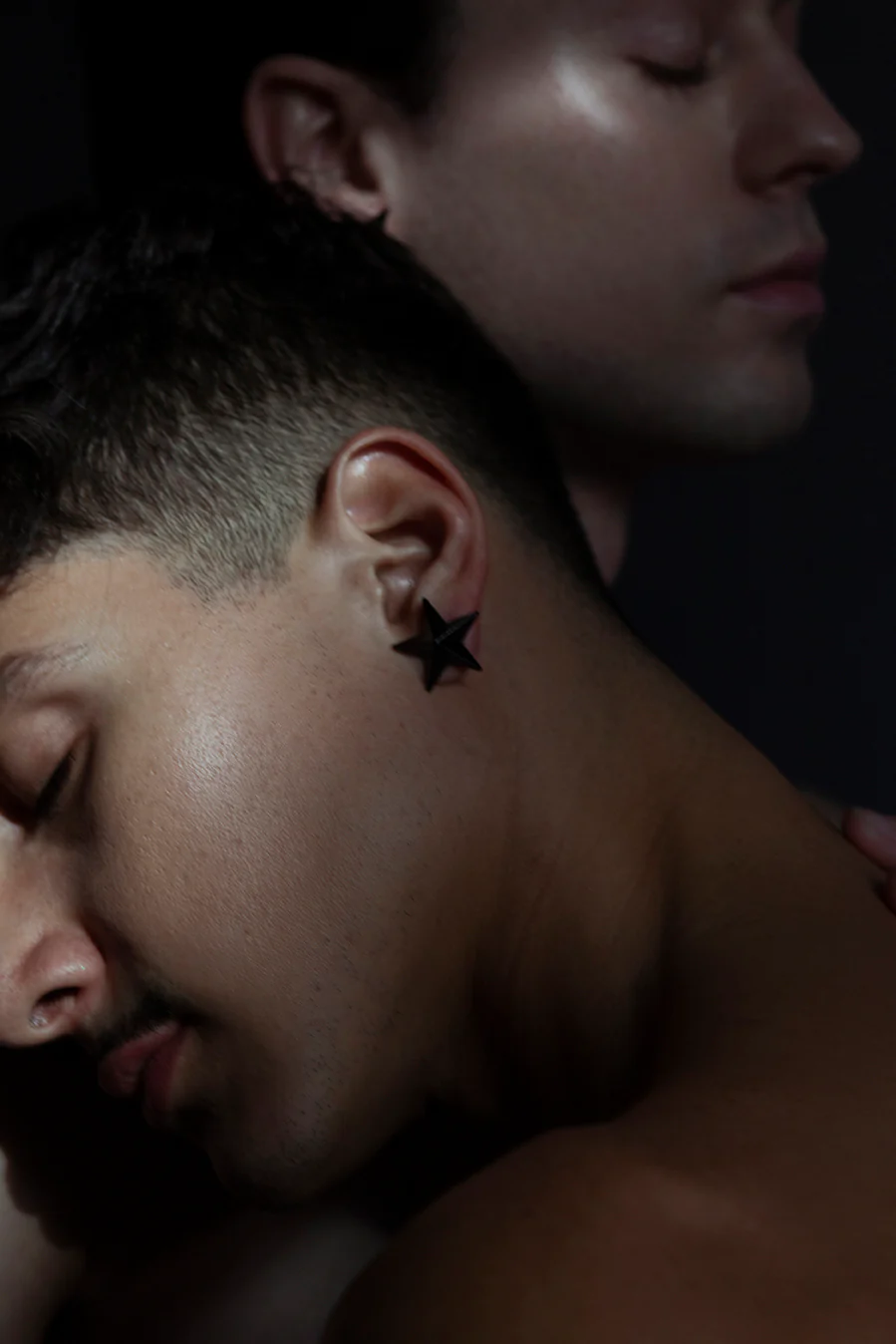 An omen, a prophet, a far-fetching galaxy, the Three-Dimensional Black Star Stud Earring instantaneously sets the mood and is a statement hard to ignore. Featuring a silver post and a laser-engraved wordmark logo